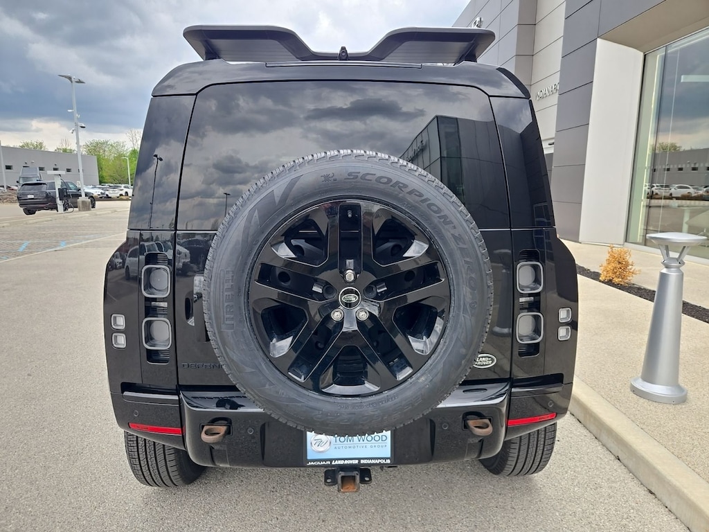 Command any terrain in luxury and style with this 2023 Land Rover Defender 110 X P400, finished in sleek Santorini Black with premium Ebony Windsor leather interior. Powered by a 3.0L turbocharged inline-6 engine with mild hybrid technology, this Defender delivers 395 horsepower and smooth, responsive performance, reaching 0-60 mph in approximately 5.8 seconds. Paired with advanced all-wheel drive and Land Roverâs legendary Terrain Response® system, itâs built to conquer both city streets and rugged landscapes with confidence.